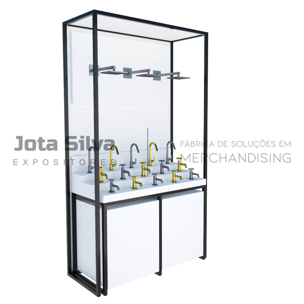 MDF AND METAL DISPLAY STAND FOR 15 TAPPS WITH REMOVABLE BASES, 01 REMOVABLE PANEL FOR SHOWER AND ACCESSORIES AND 02 OPENING DOORS