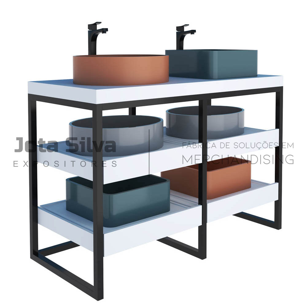EXPOSITOR EN MDF Y METAL CON 04 CAJONES PARA CUBAS