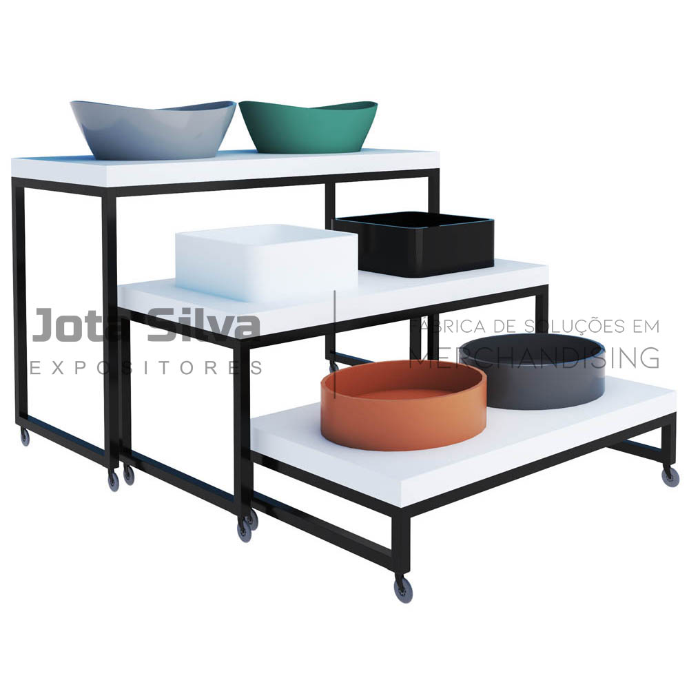 EXPOSITOR EN MDF 03 MESAS CON GATOS PARA CUBAS