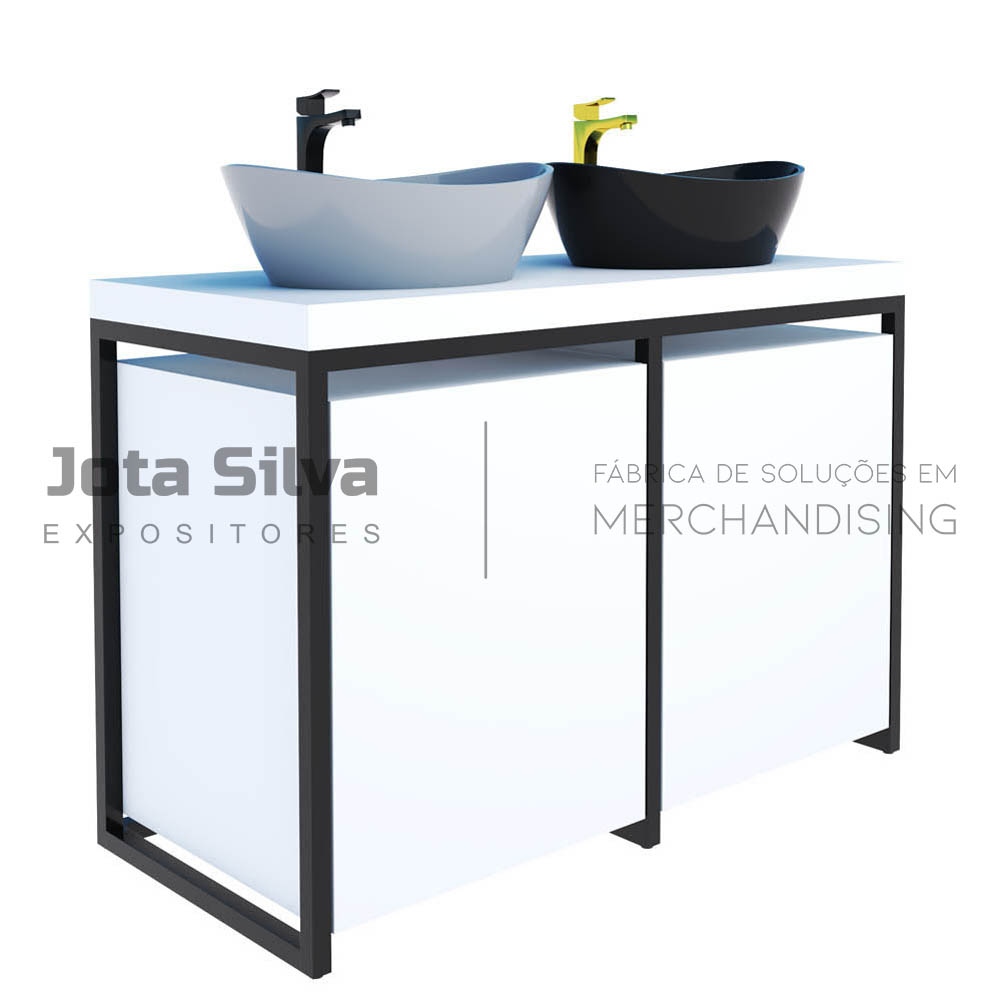 EXPOSITOR EM MDF E METAL COM 02 PORTAS DE ABRIR